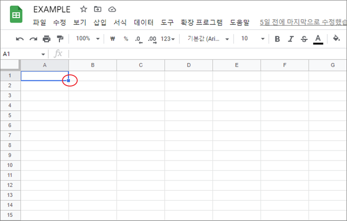 ▼ 그림처럼 셀을 선택하면 선택 테두리와 함께 오른쪽 하단에 자그마한 사각형 핸들이 나타납니다.