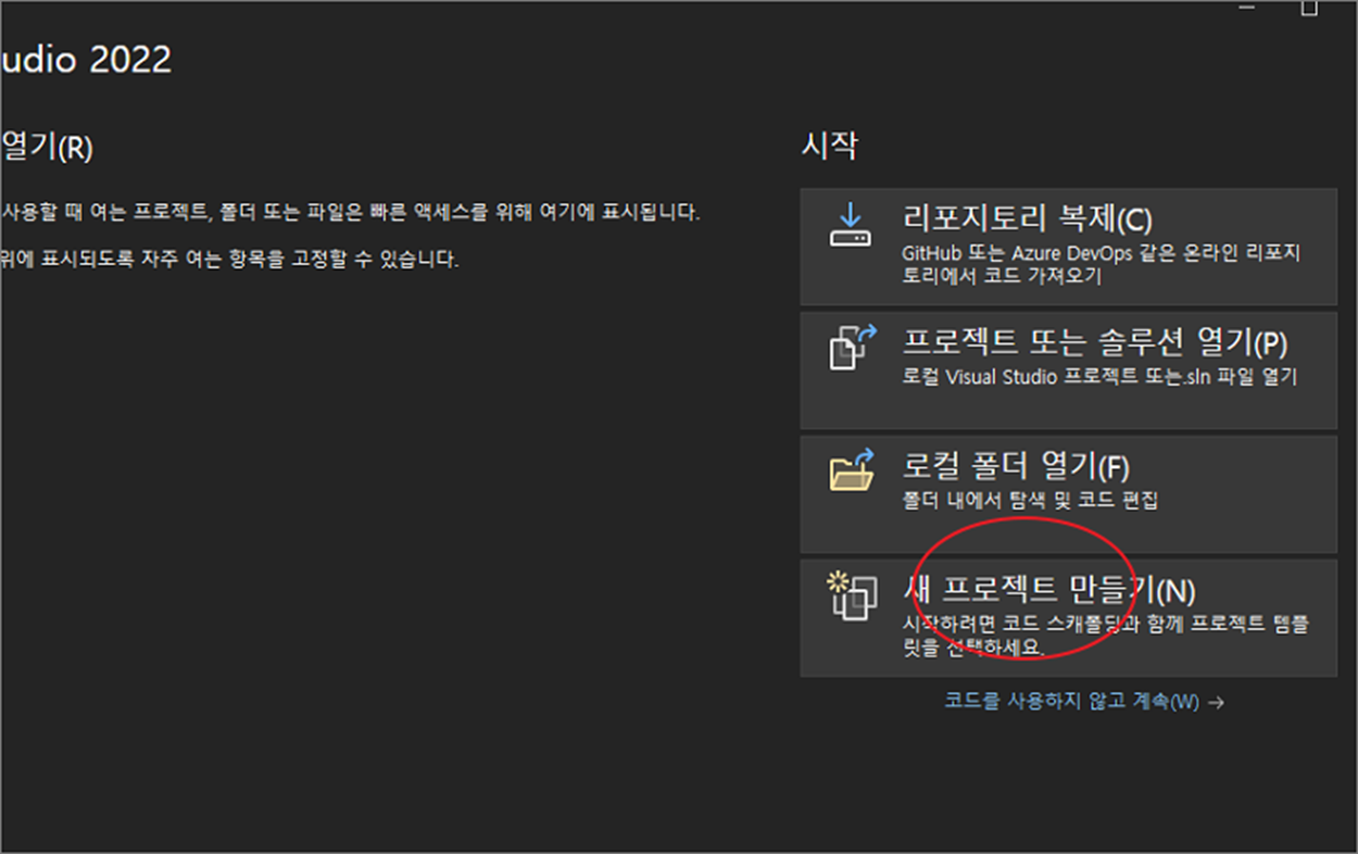 ▼ 테마 까지 선택했다면 개발을 위한 첫 번째 단계인 프로젝트를 생성해 보겠습니다. 화면 오른쪽 하단에 새 프로젝트 만들기 버튼을 클릭합니다.