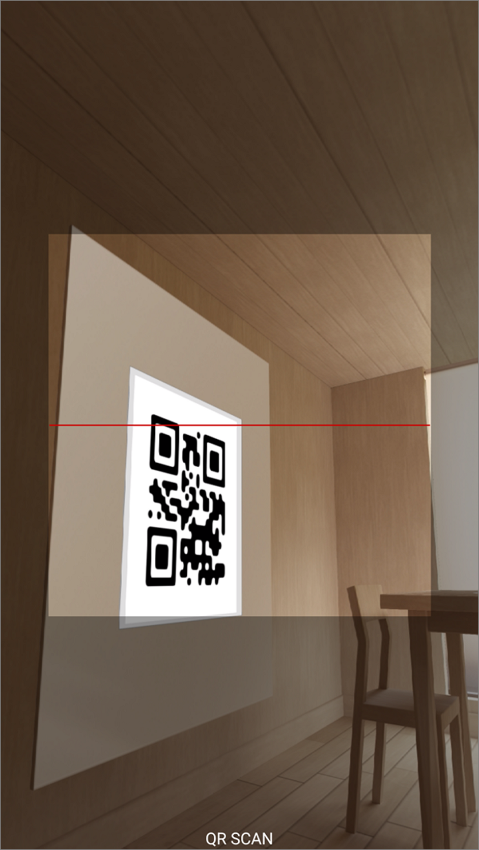 ▼ 방향을 전환하고 앞뒤로 이동합니다. 거실 왼쪽으로 가면 방이 하나 있을 겁니다. 방안으로 들어가서 왼쪽 탁자 옆 벽에 보시면 추가한 QR 코드 이미지가 있습니다. 카메라 앵글을 QR 코드에 맞추면 스캔을 시작합니다.