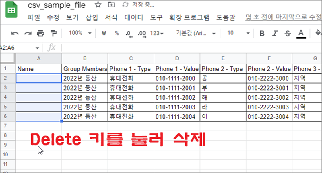 ▼ Delete 키를 눌러서 셀 데이터 모두를 삭제했습니다.
