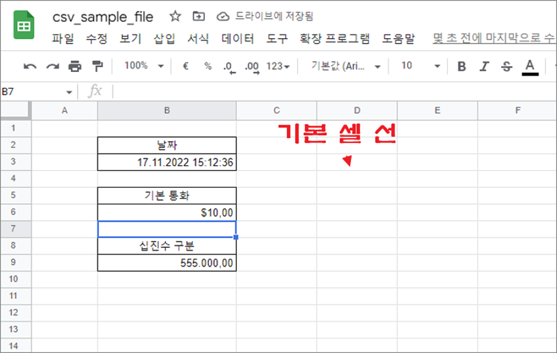 ▼ 스프레드시트는 엑셀처럼 셀 간 격자선을 회색으로 표시하고 있습니다.