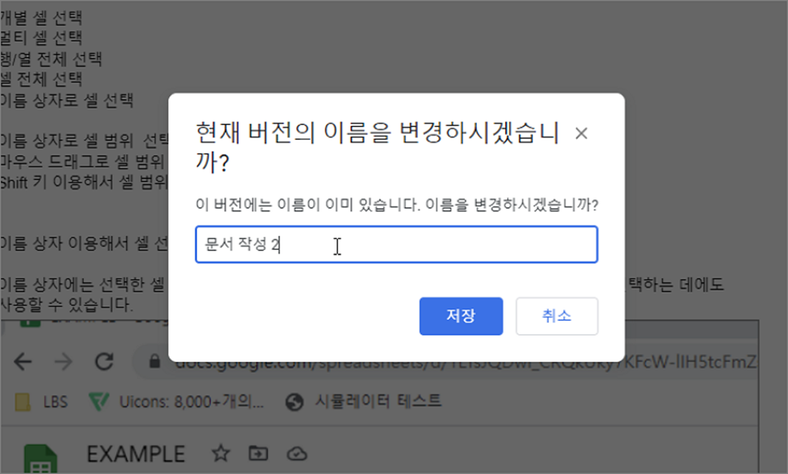 ▼ 현재 버전 이름 지정 팝업창이 뜨면 원하는 제목을 넣고 저장 버튼을 클릭합니다.