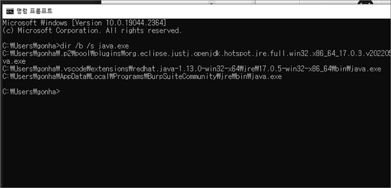 | ◎ 콘솔 dir /b /s java.exe 명령어 이용하기 |
