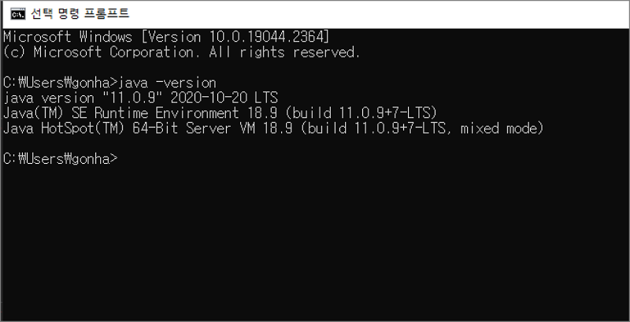 ▼ 두 번째부터는 콘솔에서 확인하는 방법입니다. java -version 명령어의 결과에는 위치가 나오지 않습니다.