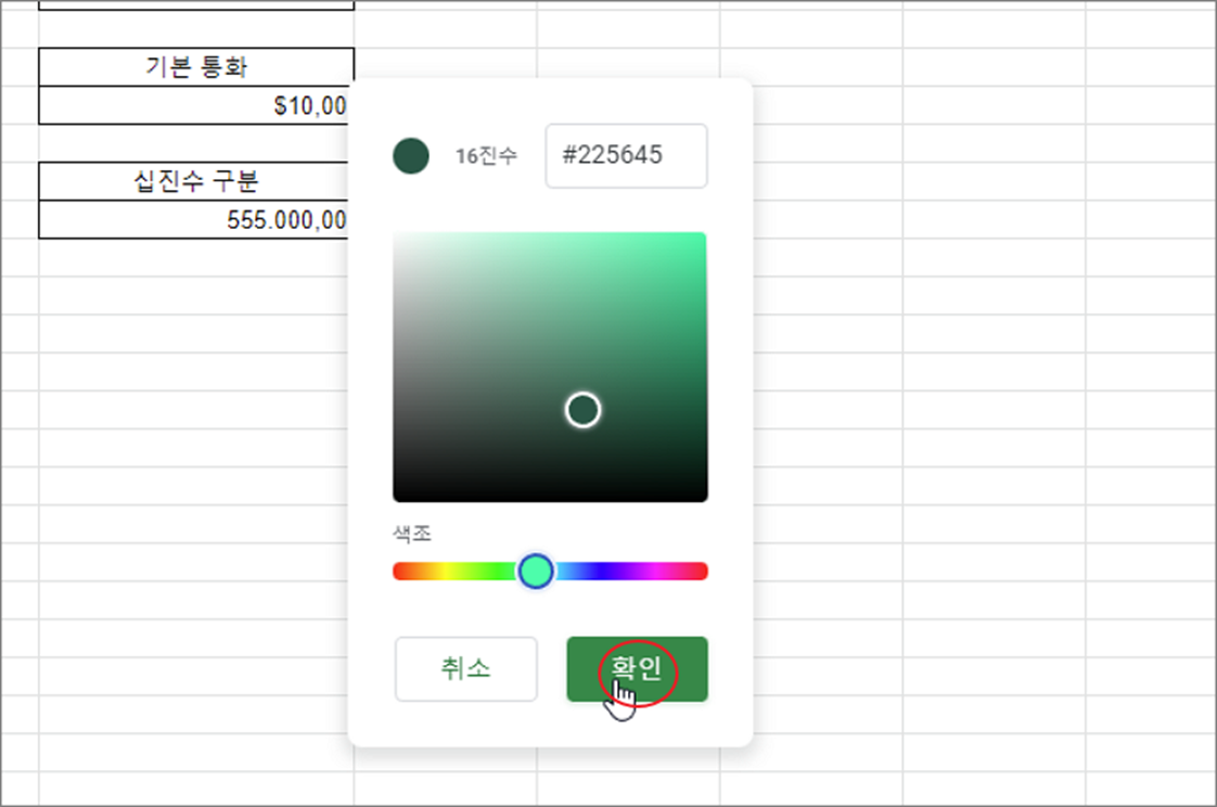 ▼ 색상이 정해지면 확인 버튼을 눌러 추가합니다.