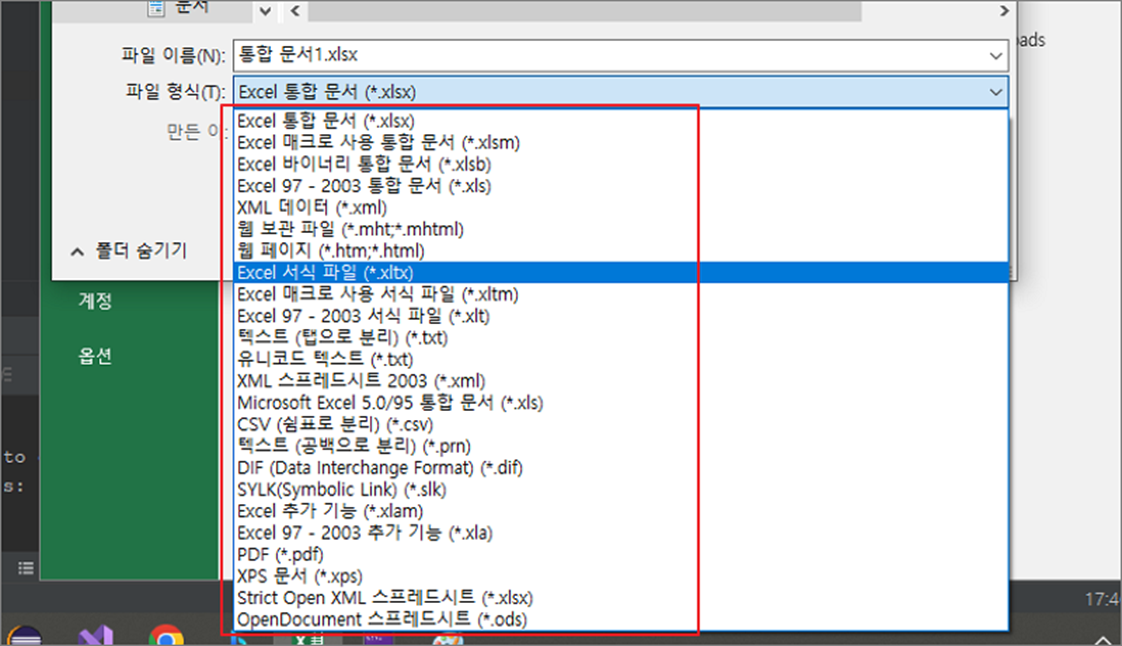 ▼ 먼저 엑셀에는 파일 형식을 이미지로 저장할 수 없다는 것을 아래 그림으로 확인할 수 있습니다.