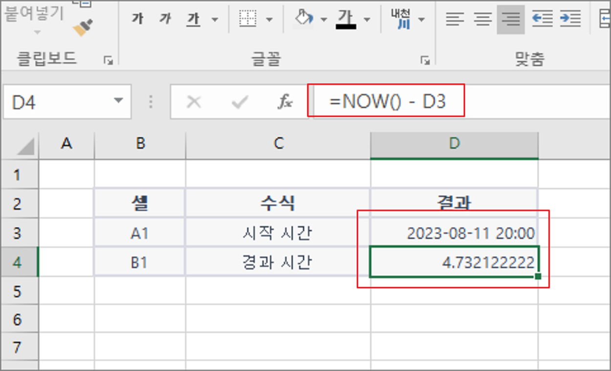 | ◎ 3. NOW 함수를 사용한 예제 |