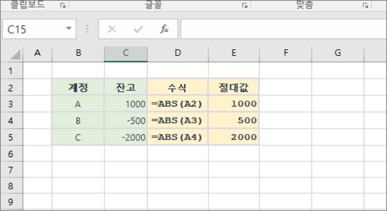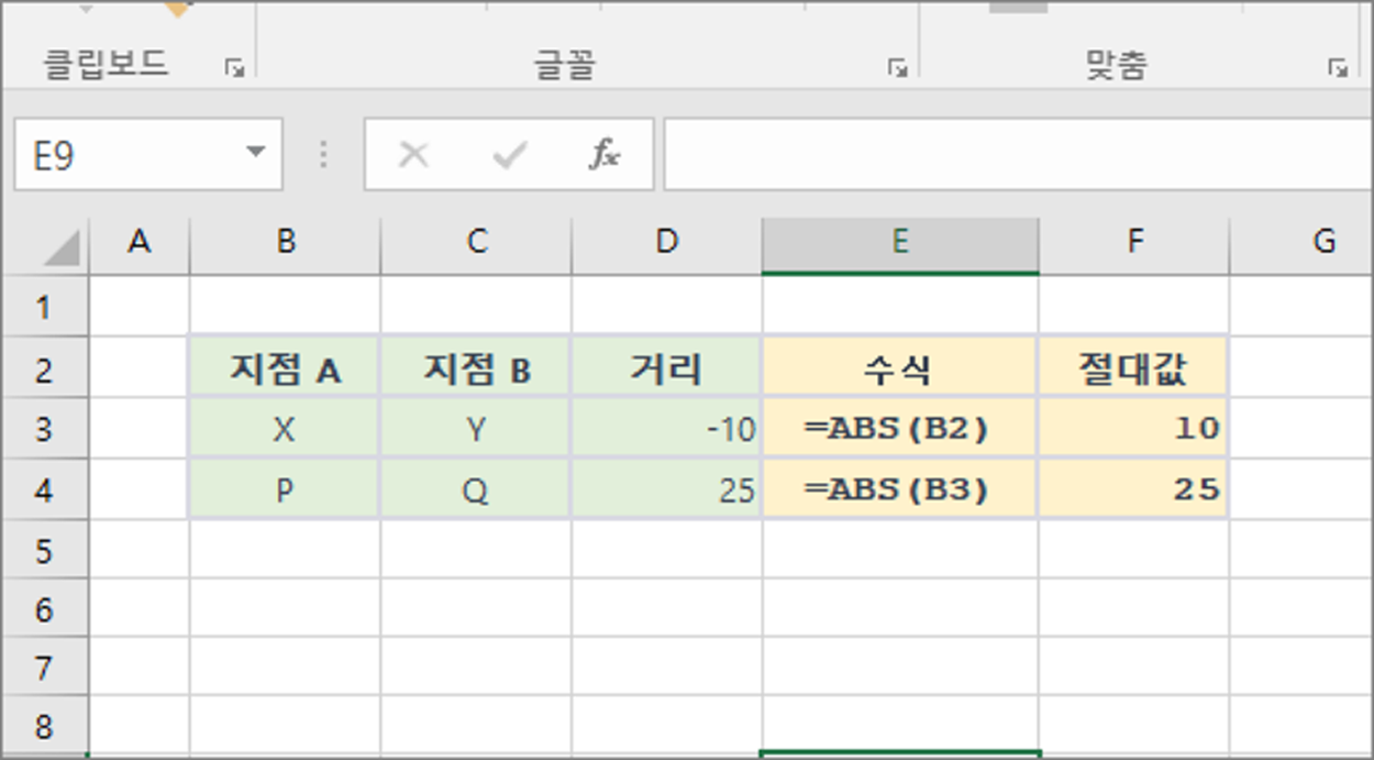 `숫자`: 절대값을 구하고자 하는 숫자를 입력합니다.