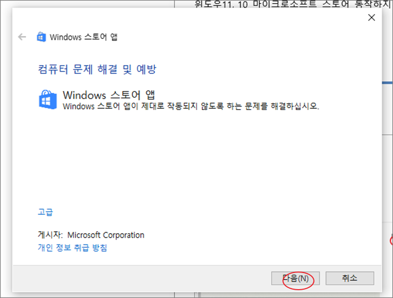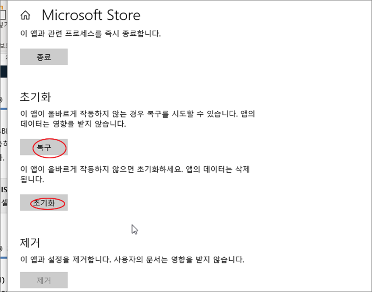 | ◎ 마이크로소프트 스토어 앱 초기화 |