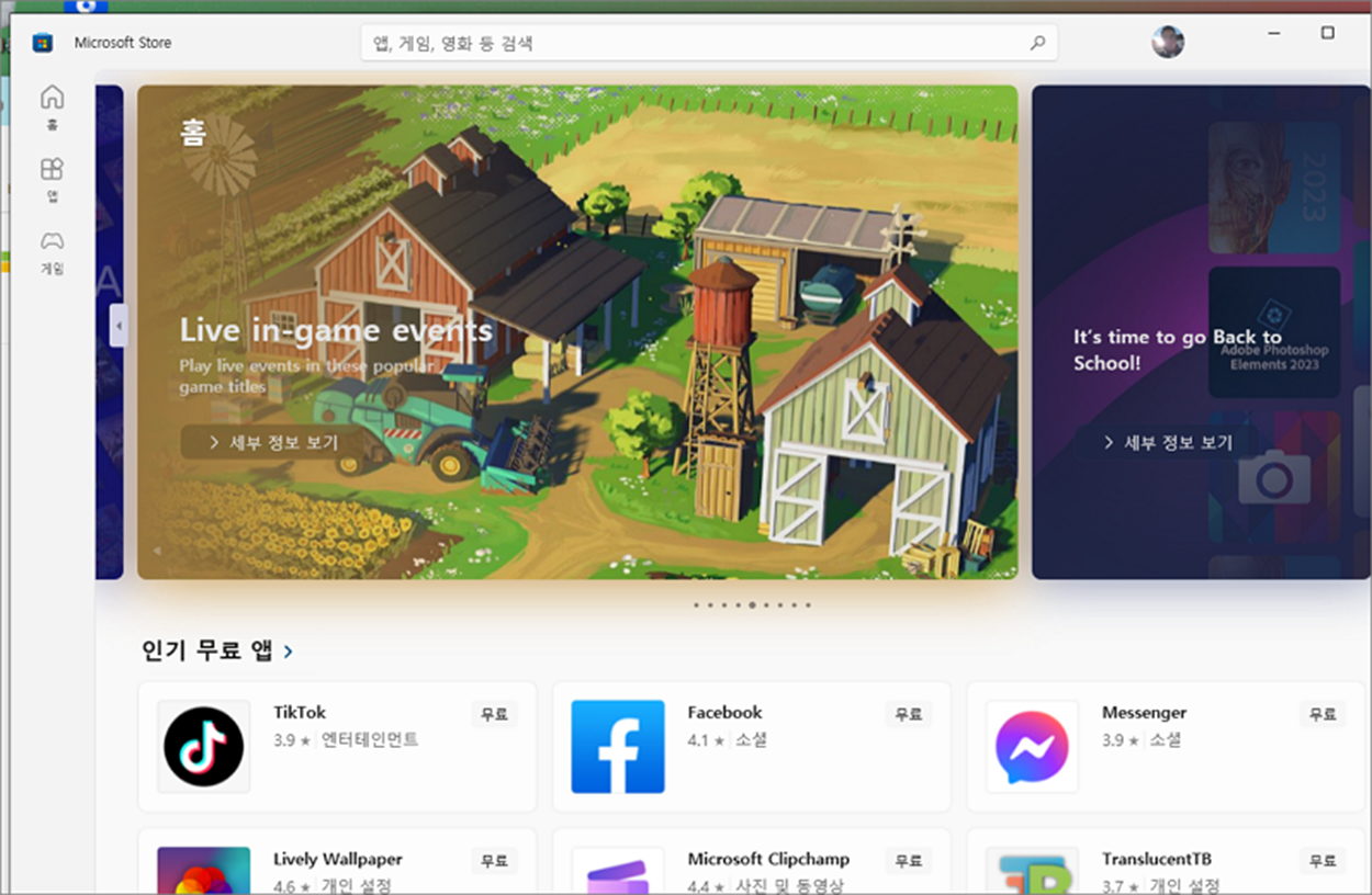 ▼ 마이크로소프트 스토어 앱이 정상적으로 실행되었습니다.