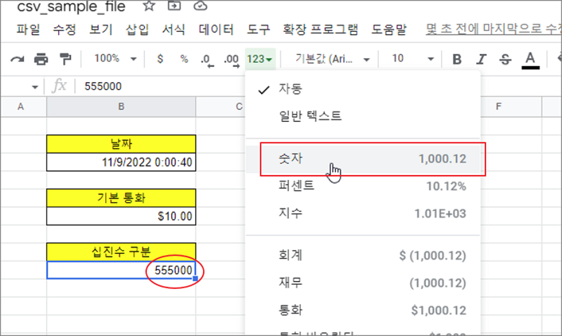 스프레드시트는 지역(국가) 설정에 따라 언어 및 정보 표시 스타일이 완전히 달라질 수 있습니다. 데이터 형식은 지역별, 나라별로 숫자, 날짜 및 통화 형식이 다를 수 있기 때문입니다. 예를 들어, 미국에서는 "1,000"을 천 단위로 나누는 구분자로 사용하지만, 유럽에서는 "1.000"을 사용합니다. 또한 날짜 형식과 통화 기호도 지역에 따라 다를 수 있습니다. 그래서 정보 표시가 사용자가 생각하고 있는 형태가 아니라면 지역 설정이 제대로 되어 있는지 살펴봐야 합니다. 아래 내용을 통해 지역에 따라서 데이터 형식들이 어떻게 바뀌는지 살펴보겠습니다.