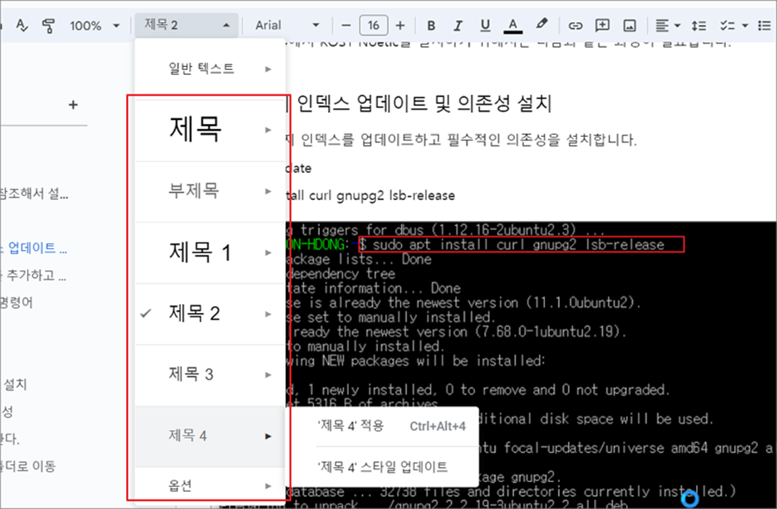 ▼ 그림처럼 “일반 텍스트” 외에 목록에서 제목 단계를 선택합니다.