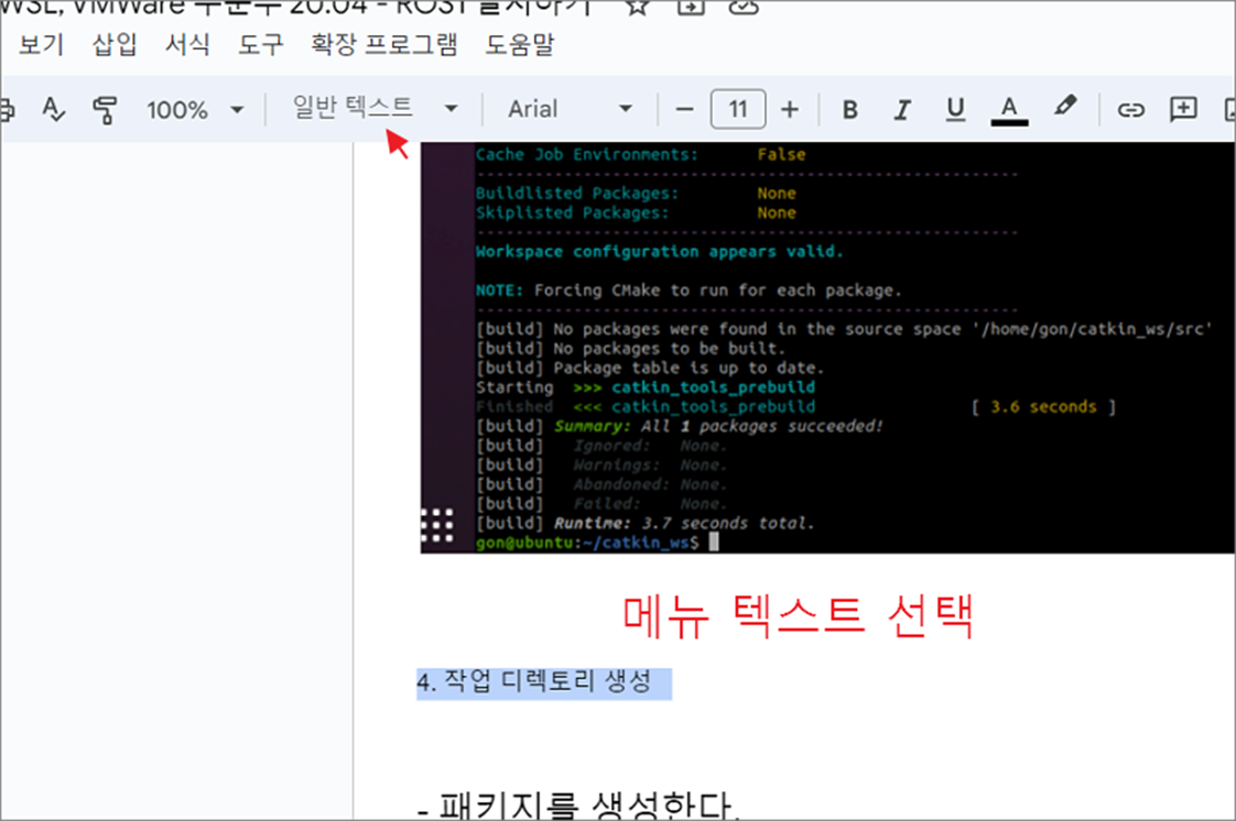 ▼ 개요 메뉴 추가는 상단 텍스트 서식란에서 가능합니다. 기본 “일반 텍스트” 로 되어 있을 겁니다. 메뉴로 추가하고 싶은 단락을 선택합니다.