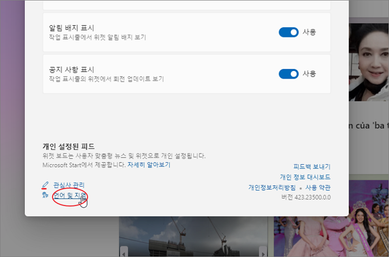 윈도우11 의 작업 관리자 왼쪽 끝에 위젯 사이트는 사용자에게 실시간 정보와 편리한 기능을 제공하여 생산성과 편의성을 향상시킵니다. 날씨, 뉴스, 캘린더 등의 정보를 한눈에 확인하고 사용자 지정 가능한 위젯을 통해 개인화된 정보를 받을 수 있습니다. 또한 알림, 음악 컨트롤, 즐겨찾기 앱 등 다양한 기능을 제공하여 작업과 엔터테인먼트를 효과적으로 관리합니다. 이런 위젯에 자신이 원하는 언어의 기사가 나오지 않으면 어떻게 해야 할까요?