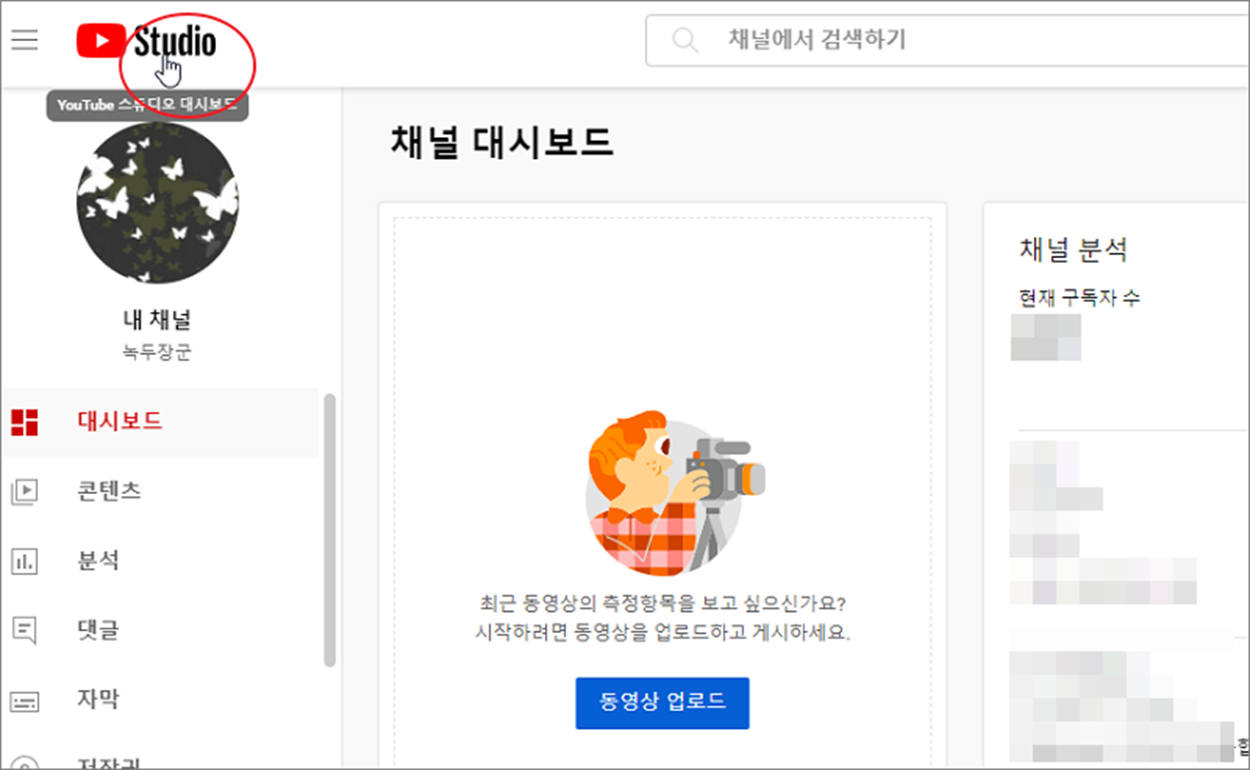 ▼ 먼저 유튜브 동영상 관리 페이지인 스튜디오로 이동합니다.