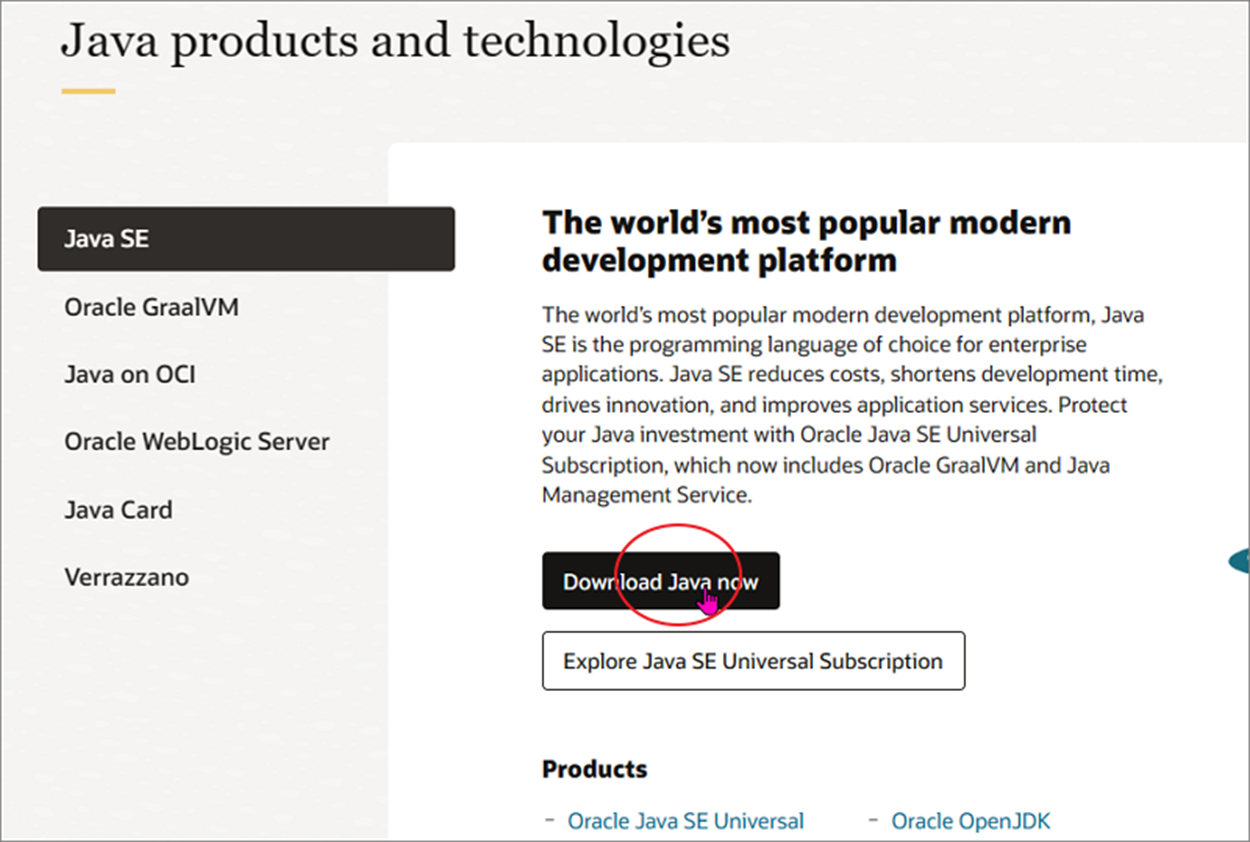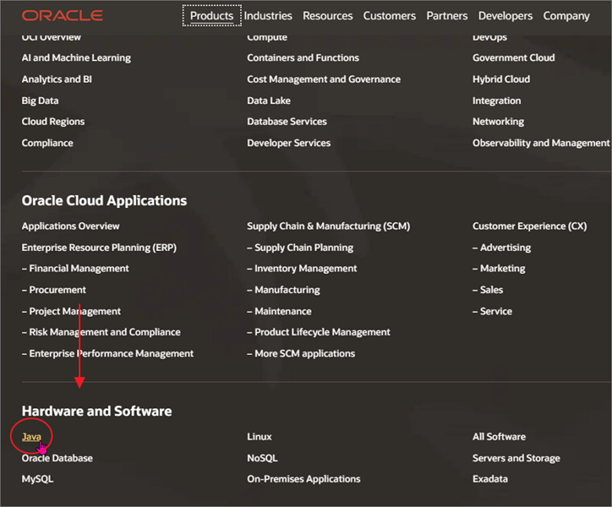 ▼ Products 메뉴 아래에 HardWare and Software 항목으로 가시면 Java 가 있습니다.