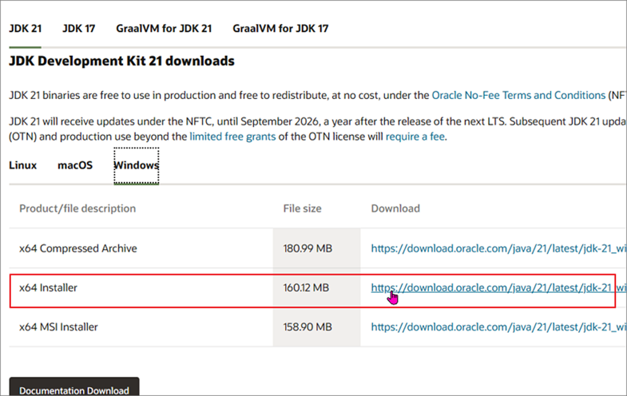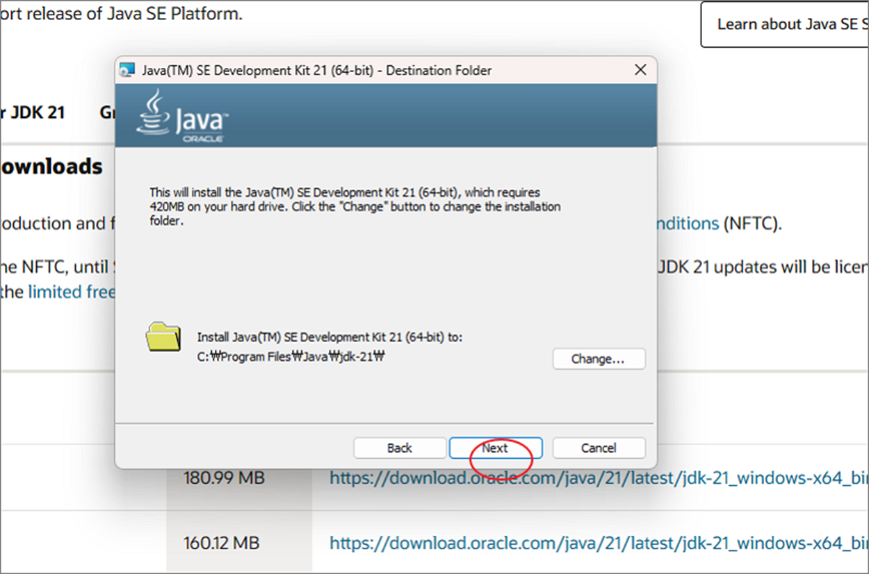 윈도우에서 최신 JDK(Java Development Kit) 버전을 설치하는 이유는 새로운 기능과 개선 사항을 활용하여 효율적으로 Java 애플리케이션을 개발하기 위해서입니다. 또한 보안 업데이트를 통해 애플리케이션의 보안성을 강화하고, 호환성 문제를 최소화하여 개발 생산성을 향상시키며, 커뮤니티 지원과 업데이트된 개발 도구를 제공받을 수 있습니다. 오라클 사이트에 접속해서 최신 버전 Java 를 다운받을 수 있습니다. 이전과 달리 로그인을 하지 않아도 됩니다.