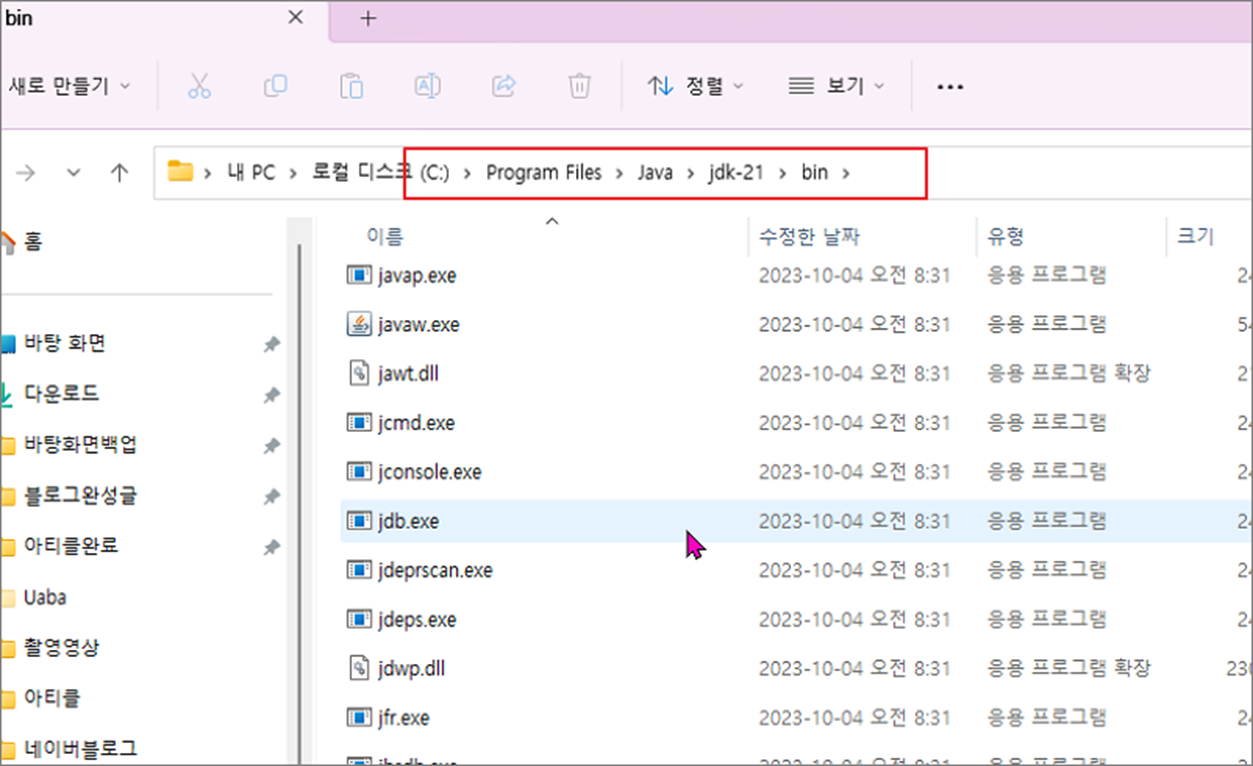 ▼ 그림처럼 해당 폴더로 들어가시면 설치한 JAVA JDK 최신 버전을 확인할 수 있습니다.