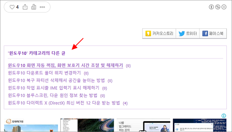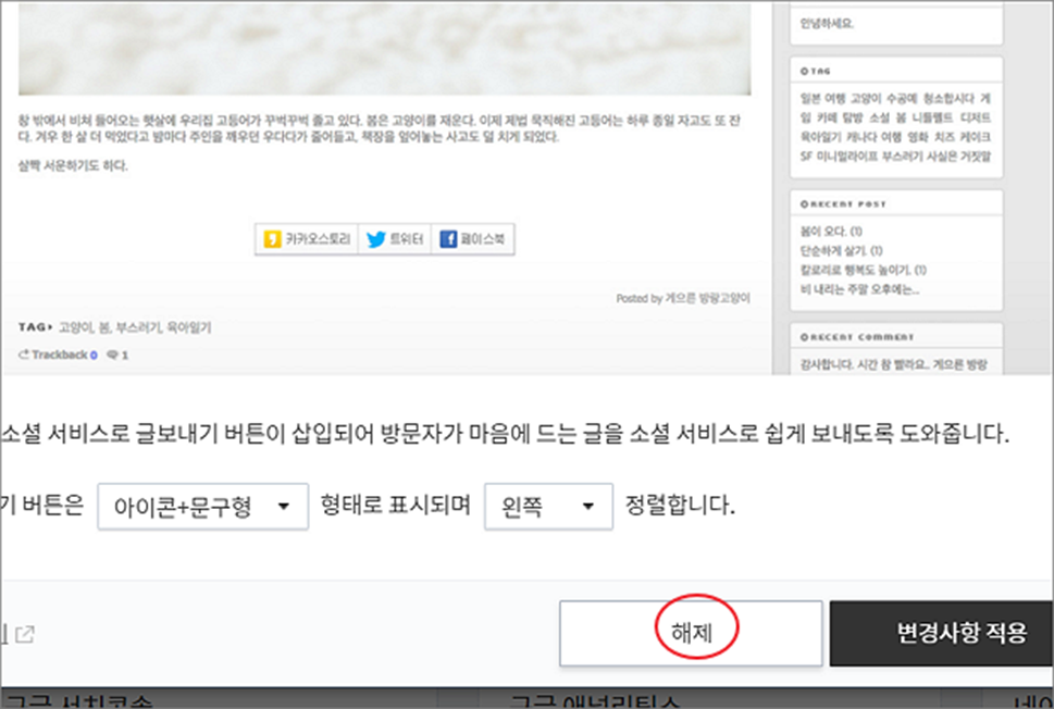 ▼ 사용 중지한 SNS 글 보내기 플러그인의 적용 여부를 확인하기 위해 포스팅 하단으로 가 봅니다.