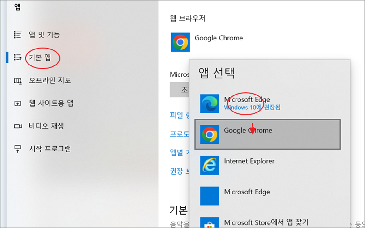 | ◎ 2. 기본 브라우저 엣지 아닌 다른 것으로 변경하기 |