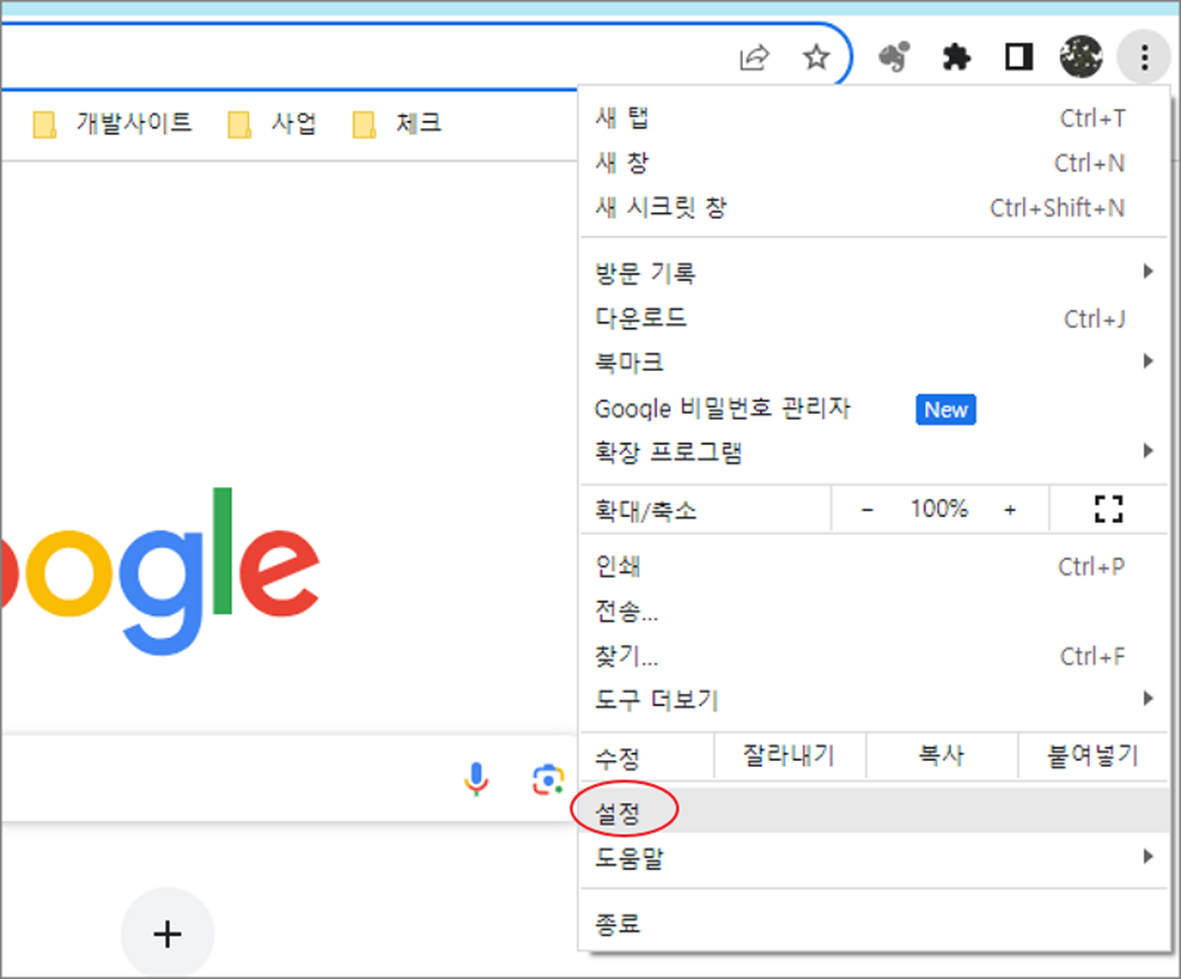 ▼ 이렇게 맞춤법 검사기가 글 작성에 방해가 될 때 해제하는 방법을 알아봅니다. 크롬 더보기 > 설정 메뉴를 클릭합니다.