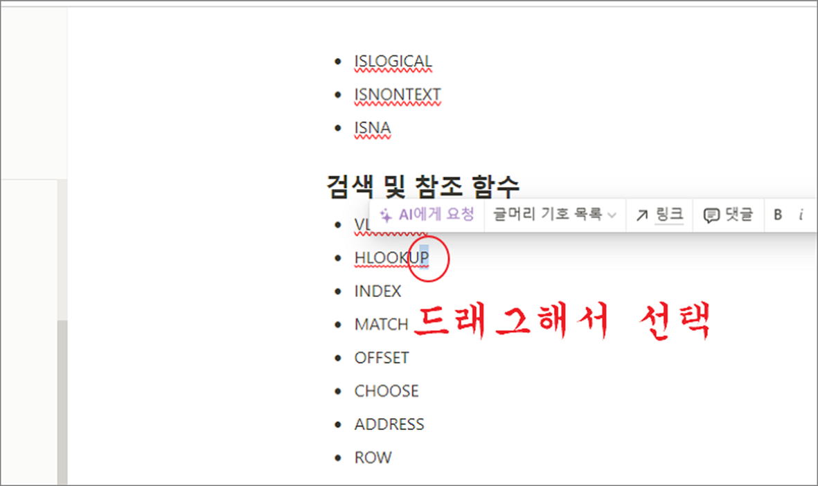 ▼ 두 번째는 웹페이지 빠른 실행 메뉴에서 중지하는 방법입니다. 먼저 한 글자만 드래그해서 선택합니다.