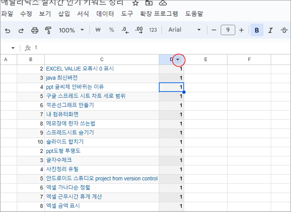 '구글 문서 도구 > 구글 스프레드시트' 카테고리의 다른 글