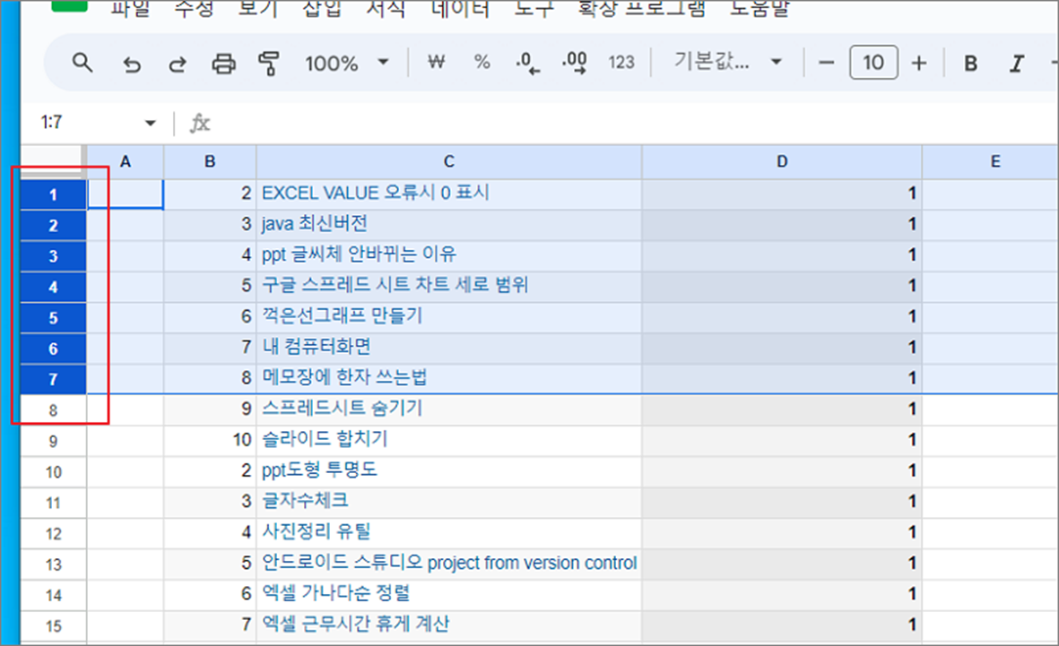 | 스프레드시트 조건부 서식 이용해서 중복값 찾아 삭제하기 (0) | 2023.10.17 |