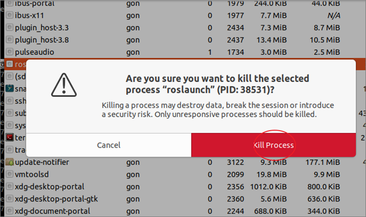 ▼ 화면에는 프로세스를 종료할 것인지 묻는 팝업창이 뜹니다. “Kill Process” 버튼을 눌러 프로세스를 종료합니다.