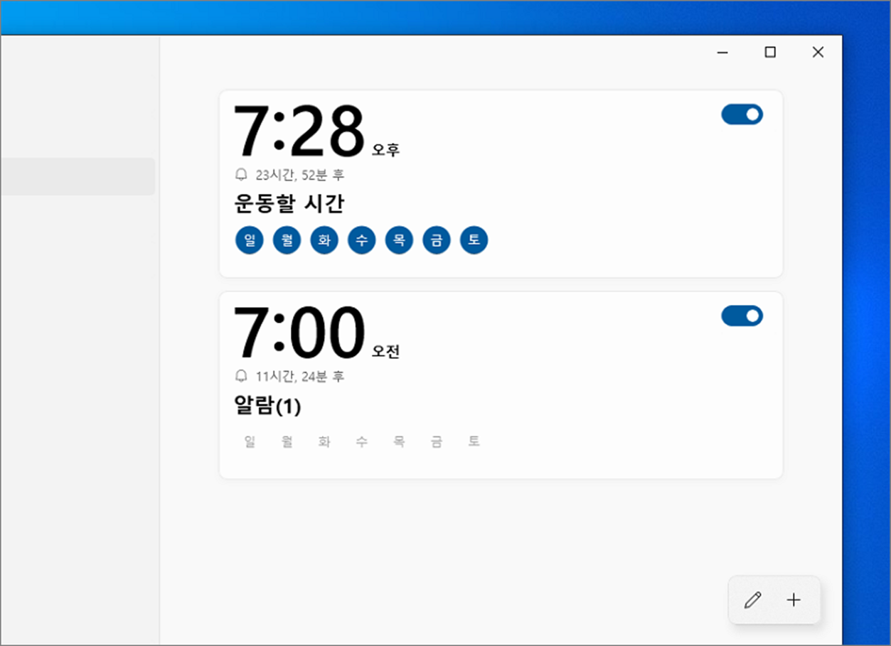 ▼ 이제 관리하는 알람이 두개가 되었습니다. 이렇게 스케줄에 필요한 알람을 계속해서 추가할 수 있습니다.