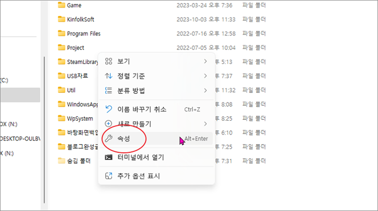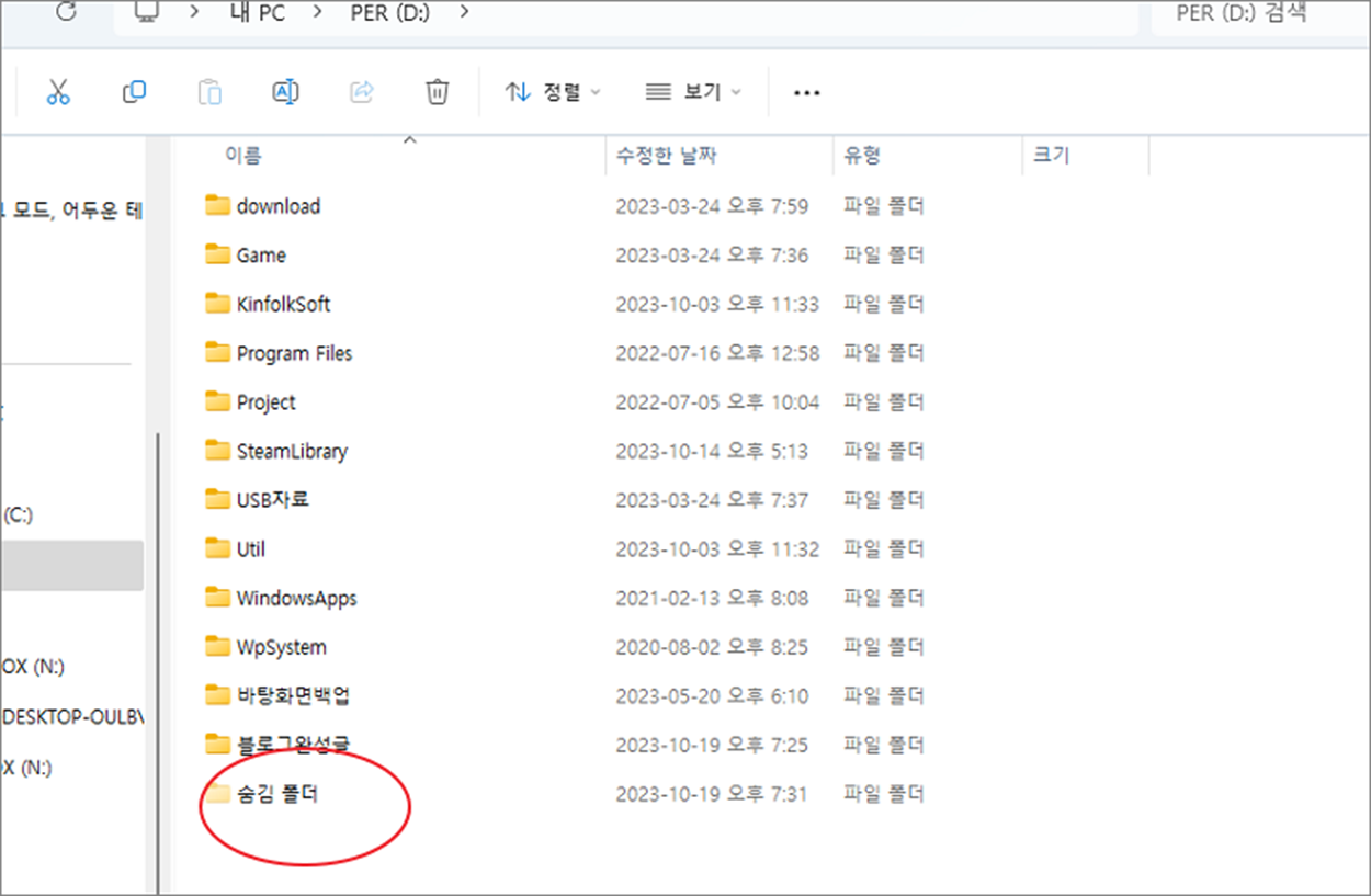 | ◎ 3. 폴더, 파일 숨김 해제하기 |