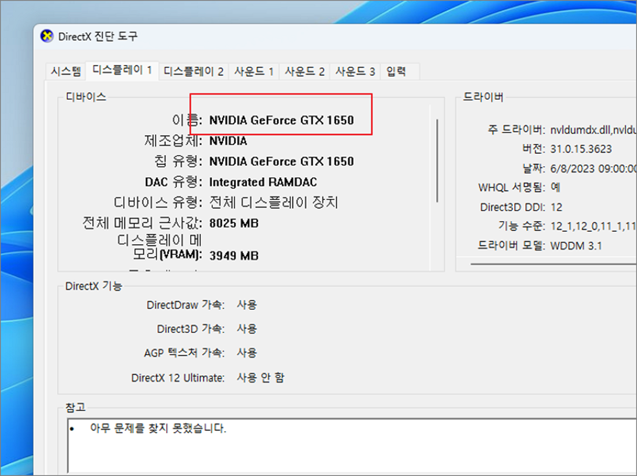 | ◎ 3. 세 번째 방법 - DirectX 진단 도구 이용 |
