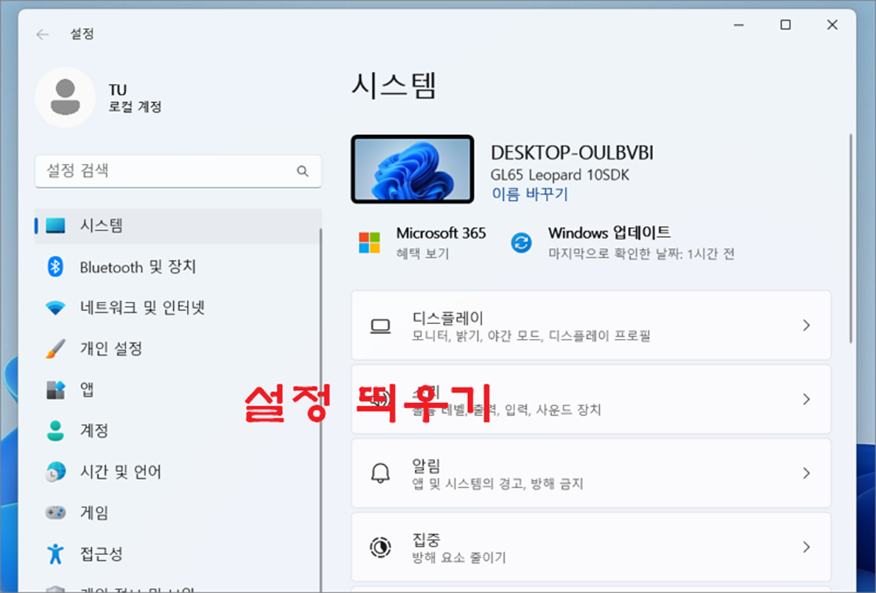 ▼ 먼저 검색 기능이나 메뉴를 통해 설정창으로 이동합니다.
