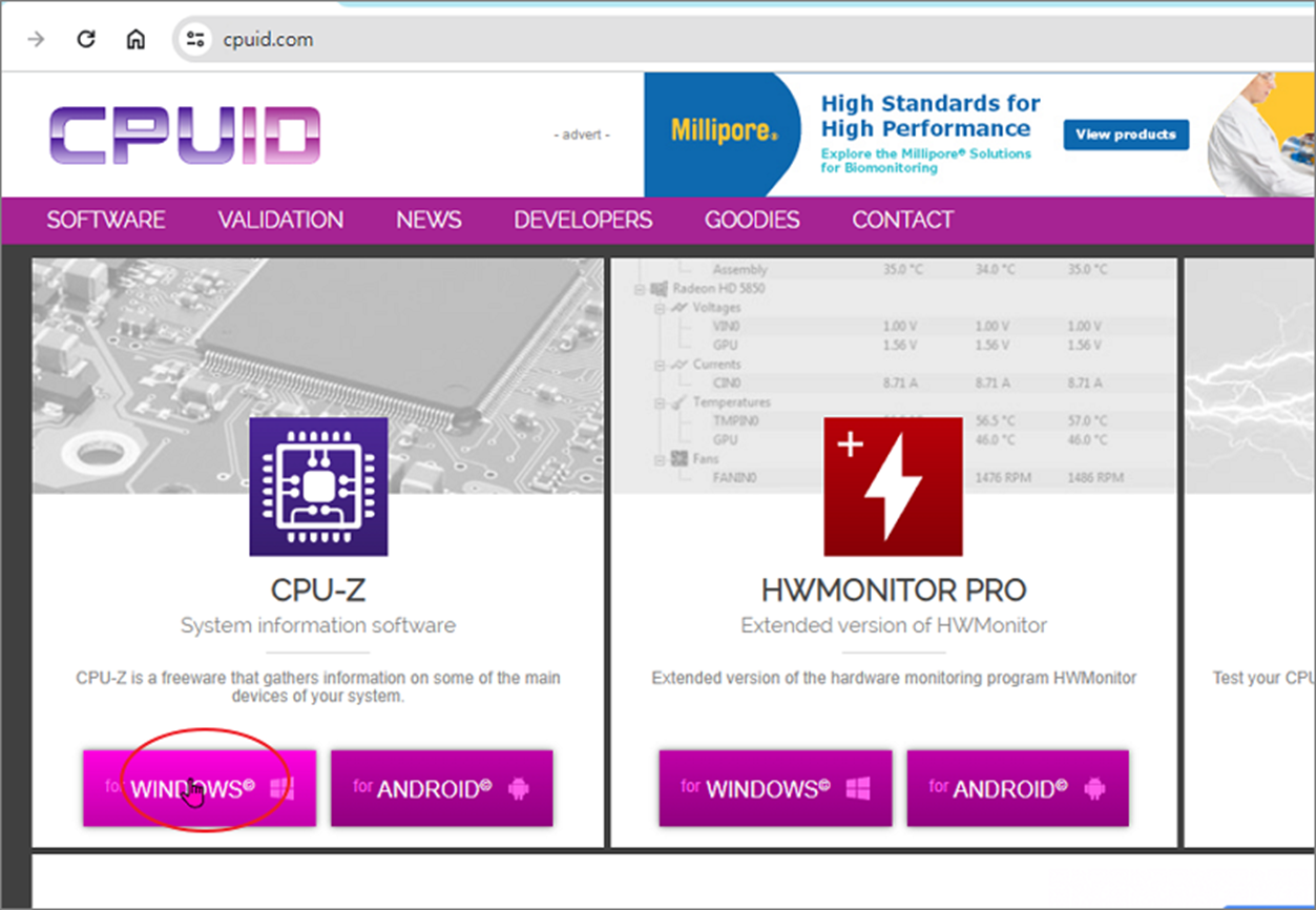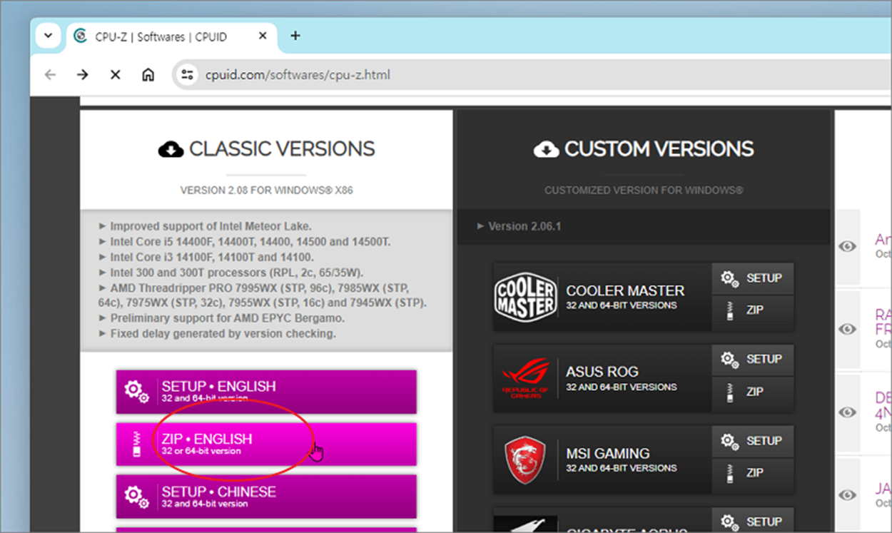 ▼ 다음은 cpu-z 라는 유명 유틸리티 프로그램으로 확인하는 방법입니다. https://cpuid.com 으로 접속합니다.