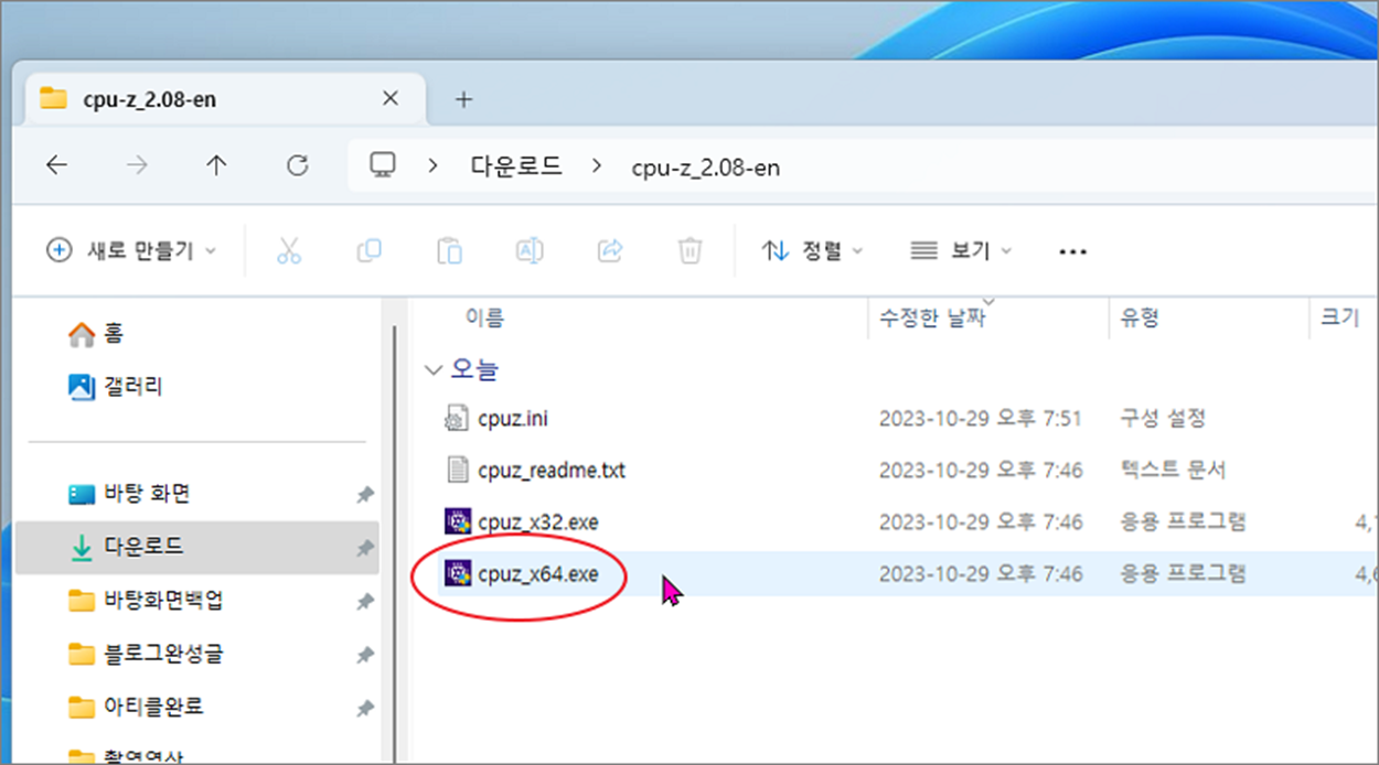 ▼ 압축 푼 파일에서 cpu_x64.exe 실행 파일을 클릭합니다.