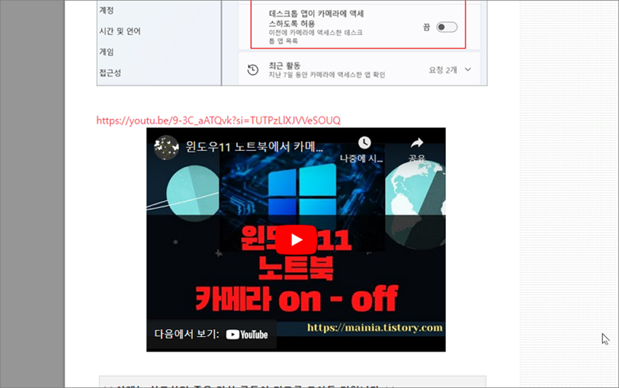 | 윈도우11 보안 노트북 카메라 활성화/비활성화 하기 (1) | 2025.04.21 |