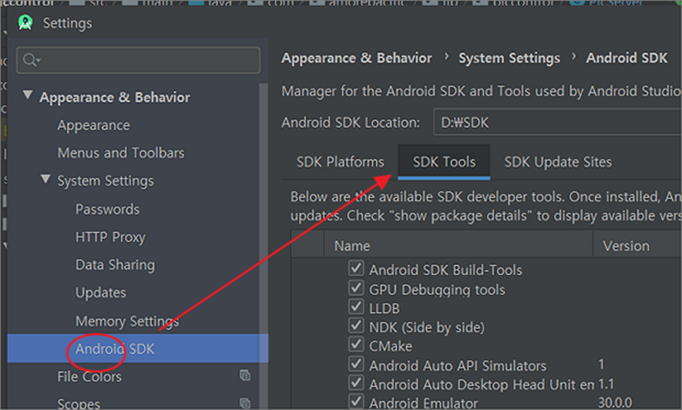 ▼ Android SDK > SDK Tools 탭으로 이동합니다.