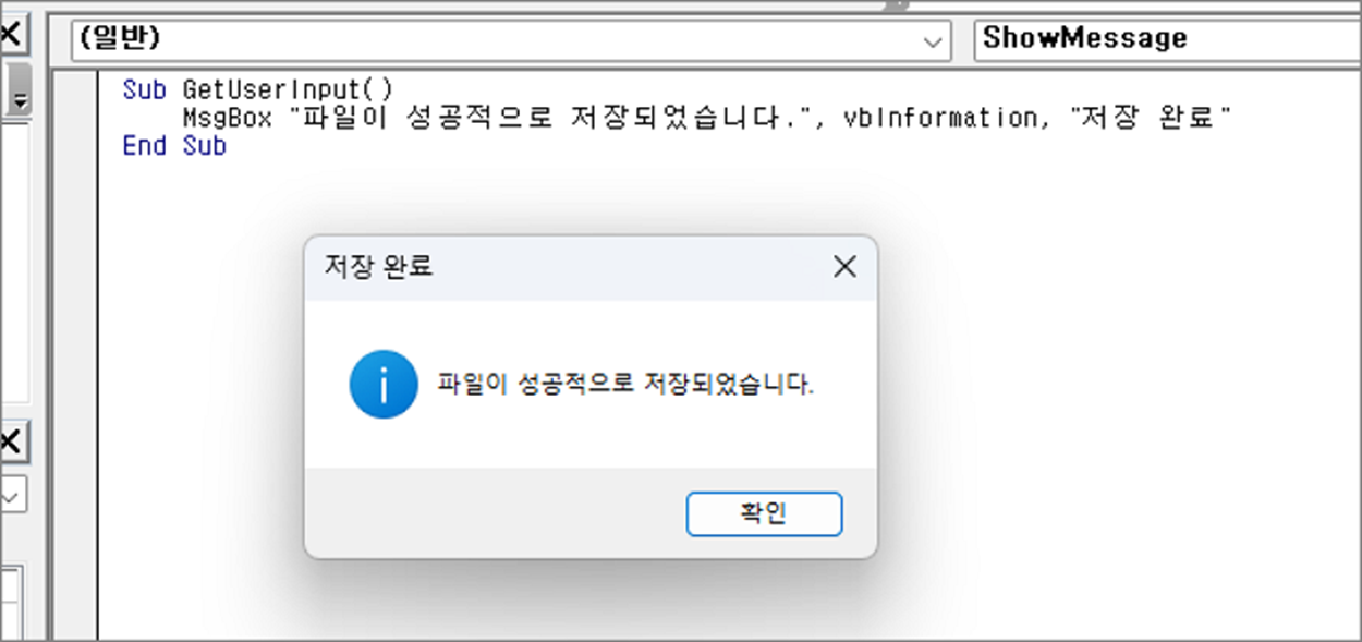 MsgBox "파일이 성공적으로 저장되었습니다.", vbInformation, "저장 완료"