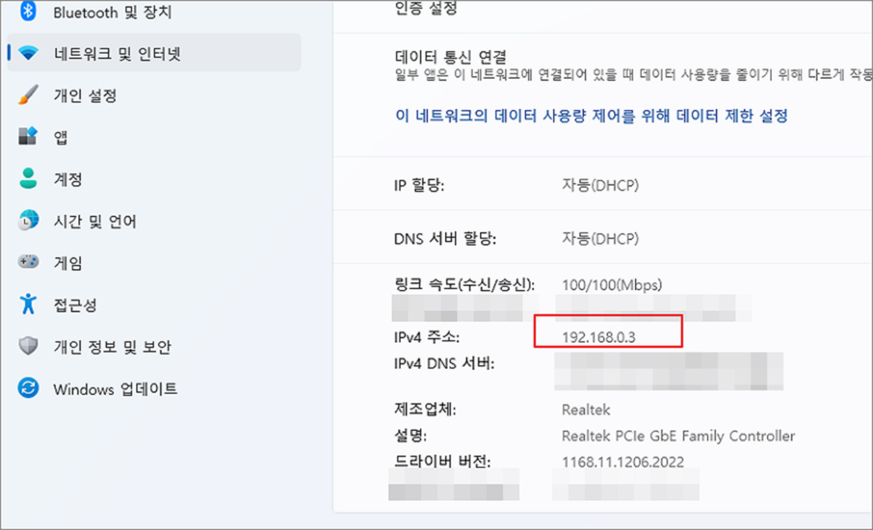 ▼ 이더넷 설정 페이지에서 아래로 내려가서 IPv4 주소를 찾습니다. 여기에 할당된 정보가 아이피 주소입니다. 이상으로 윈도우11에서 아이피 주소를 확인하는 두 가지 방법을 알아보았습니다.