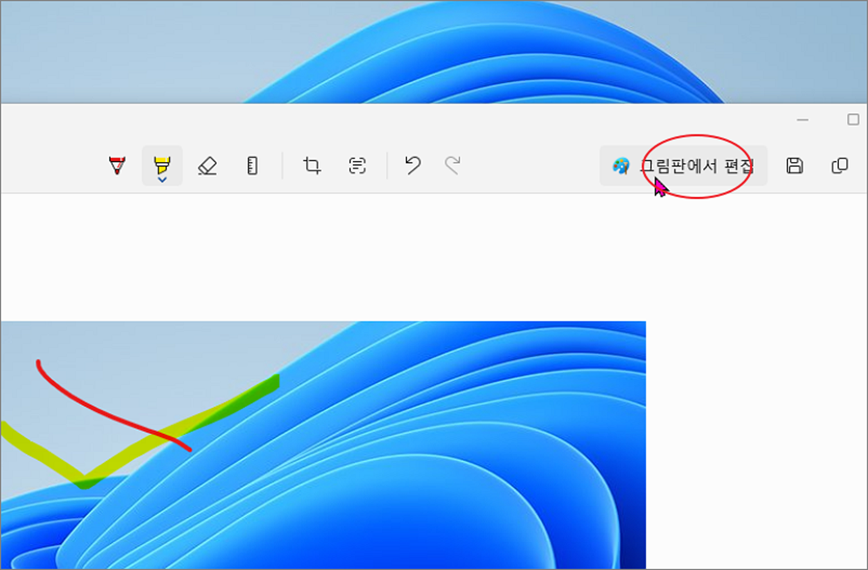 ▼ 좀더 디테일한 편집이 필요한 경우 오른쪽 상단에 "그림판에서 편집" 을 클릭해 보세요.