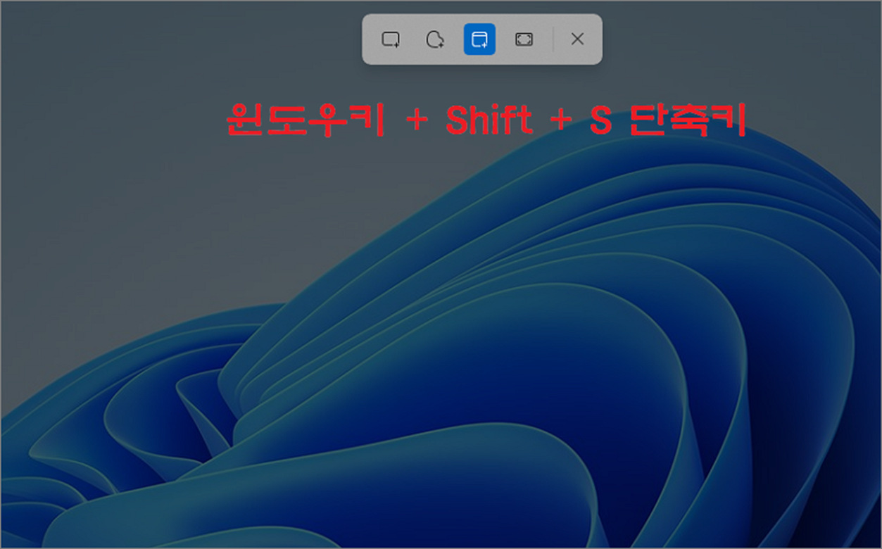 ▼ 마지막으로 "전체 호면 모드"입니다. 전체 화면 모드는 연결된 모든 모니터의 영역까지 같이 캡처합니다. 이런 캡처 도구는 매번 검색을 통해서 실행하지 않아도 됩니다. 실행 단축키는 윈도우로고 + shift 키 + S 입니다. 단축키를 눌러 캡처 도구를 바로 띄워보세요.