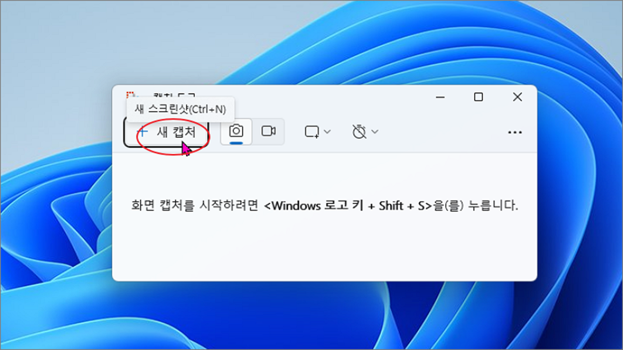 ▼ 실행한 캡처 도구 화면에서 왼쪽 상단 "새 캡처" 메뉴를 클릭합니다.