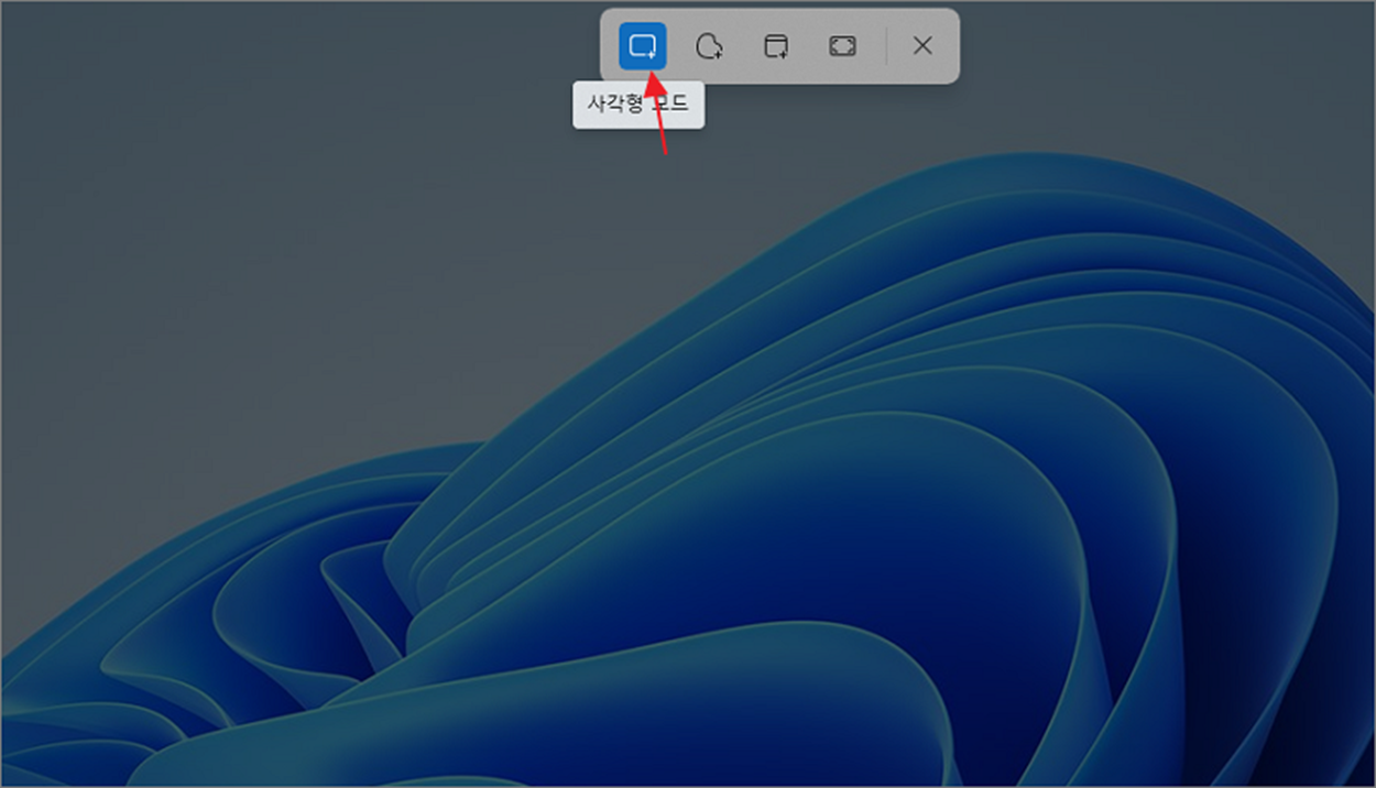 ▼ 캡처 기능이 시작되면 상단에는 여러 캡처 형태를 선택할 수 있는 툴바가 나타납니다. 툴바에는 사각형 영역을 지정해서 캡처하는 "사격형 모드" 와 자유롭게 선을 그어서 캡처 영역을 지정하는 "자유 형식 모드" 가 있습니다. 다음 "창모드" 와 "전체 화면 모드" 이렇게 4가지가 있습니다. 하나씩 실행해서 어떤 형태의 캡처가 가능한지 알아보겠습니다. "사격형 모드" 는 마우스로 드래그해서 영역을 지정하고 마우스를 떼면 사각형 영역안에 내용을 캡처합니다.