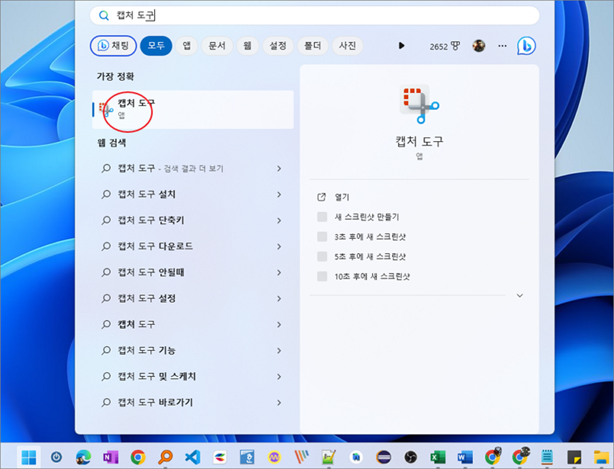 ▼ 먼저 검색을 통해 캡처 도구를 실행해 보겠습니다.