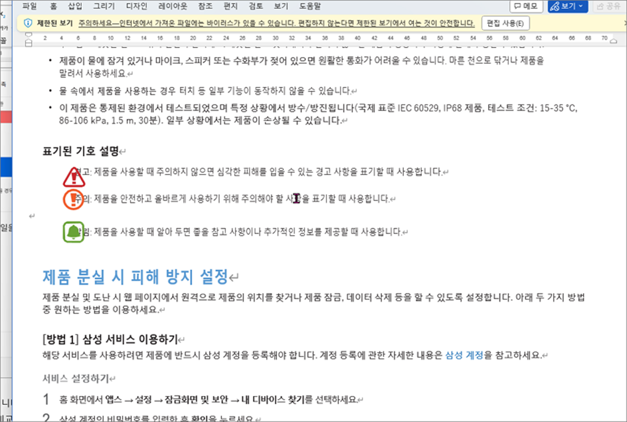 ▼ 다운받은 파일을 열어 보겠습니다. (PDF) 원본 파일과 비교해 보면 크게 달라진 것은 없지만 이미지에 붙어 있던 텍스트는 제대로 표현이 되지 않네요. 그리고 (PDF) 에 사용한 표는 크게 문제 없이 잘 변환이 되었습니다. 이상으로 어도비(Adobe) 에서 제공하는 무료 제공 사이트에서 (PDF) 를 워드로 변환해 보았습니다.