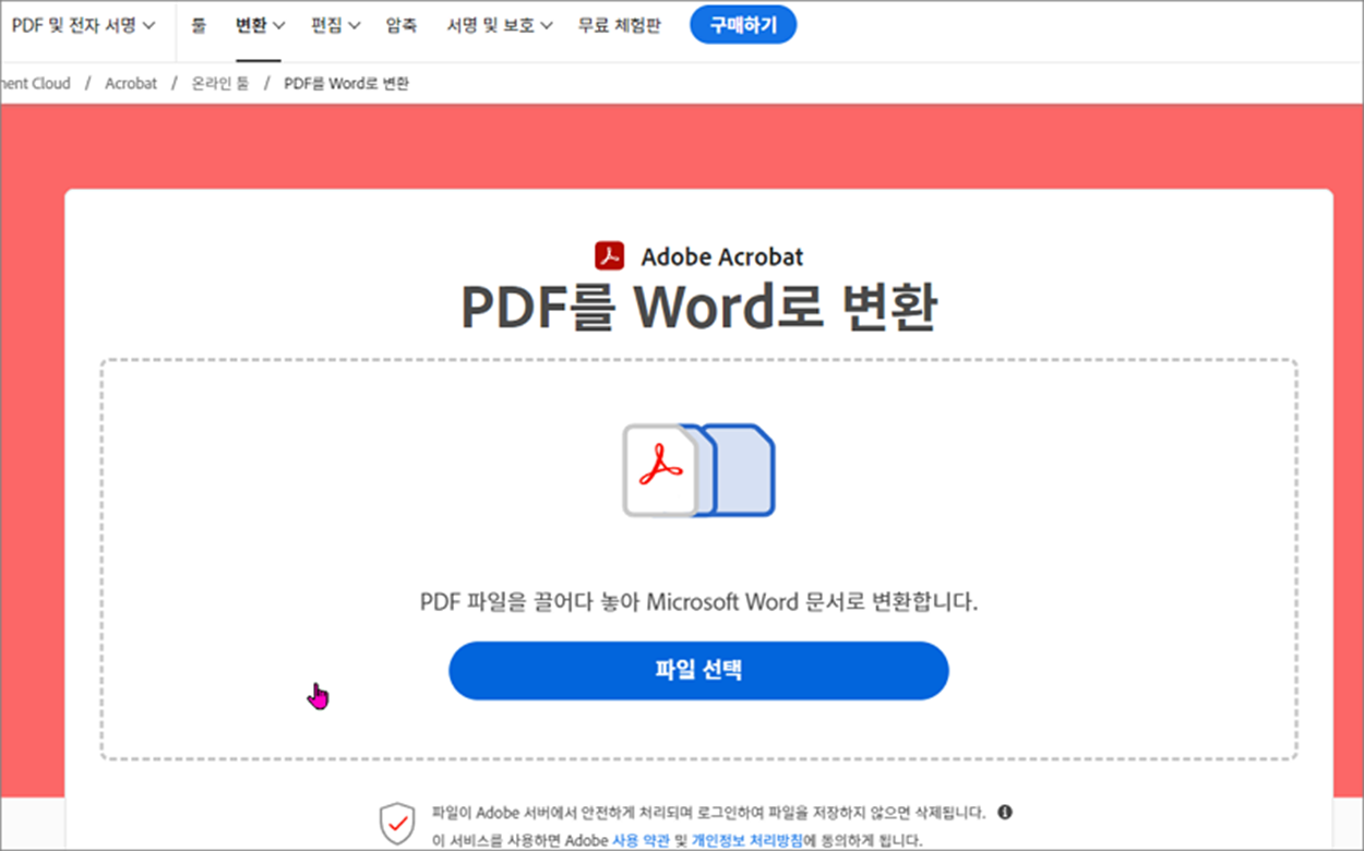피디에프(PDF) 파일을 워드로 변환하는 방법은 아주 다양합니다. 무료로 변환해 주는 서비스들이 아주 많기 때문입니다. 하지만 변환하는 과정에서 파일을 서버로 올려야 되기 때문에 나의 귀중한 정보가 복사될 수도 있습니다. 아무래도 피디에프(PDF) 포맷을 만든 아이티(IT) 회사인 어도비(Adobe) 사이트를 이용하는 것이 좋습니다. 그래서 어도비(Adobe) 사의 피디에프(PDF) 파일을 워드로 변환하기 위해 무료 변환 웹 페이지를 이용할 것입니다.