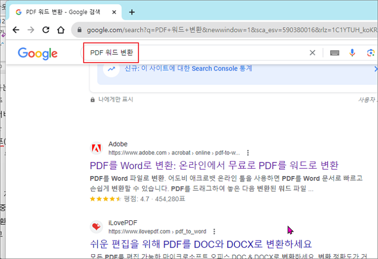 ▼ 브라우저를 실행하고 검색창에 "PDF 워드 변환" 이라고 입력합니다.