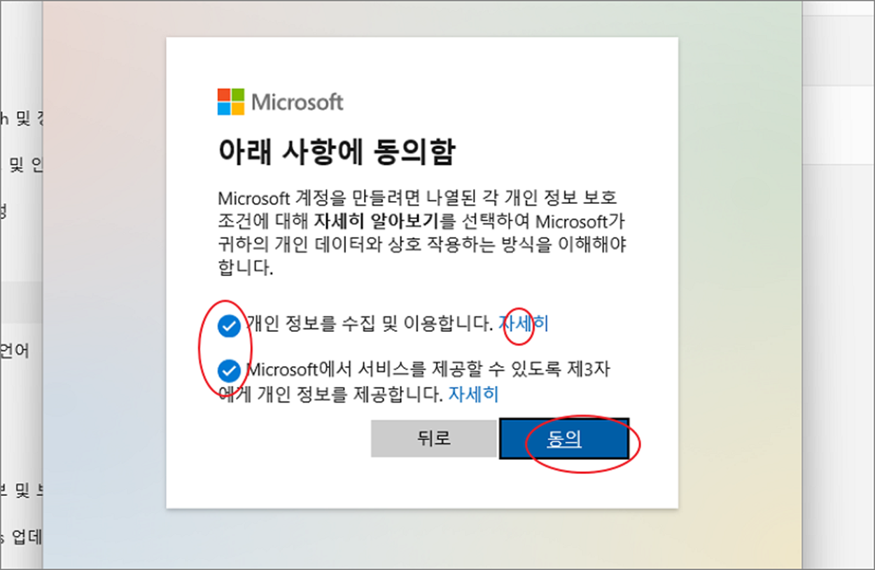 ▼ 이렇게 두가지 옵션에 체크가 되었다면 "동의" 버튼을 클릭합니다.