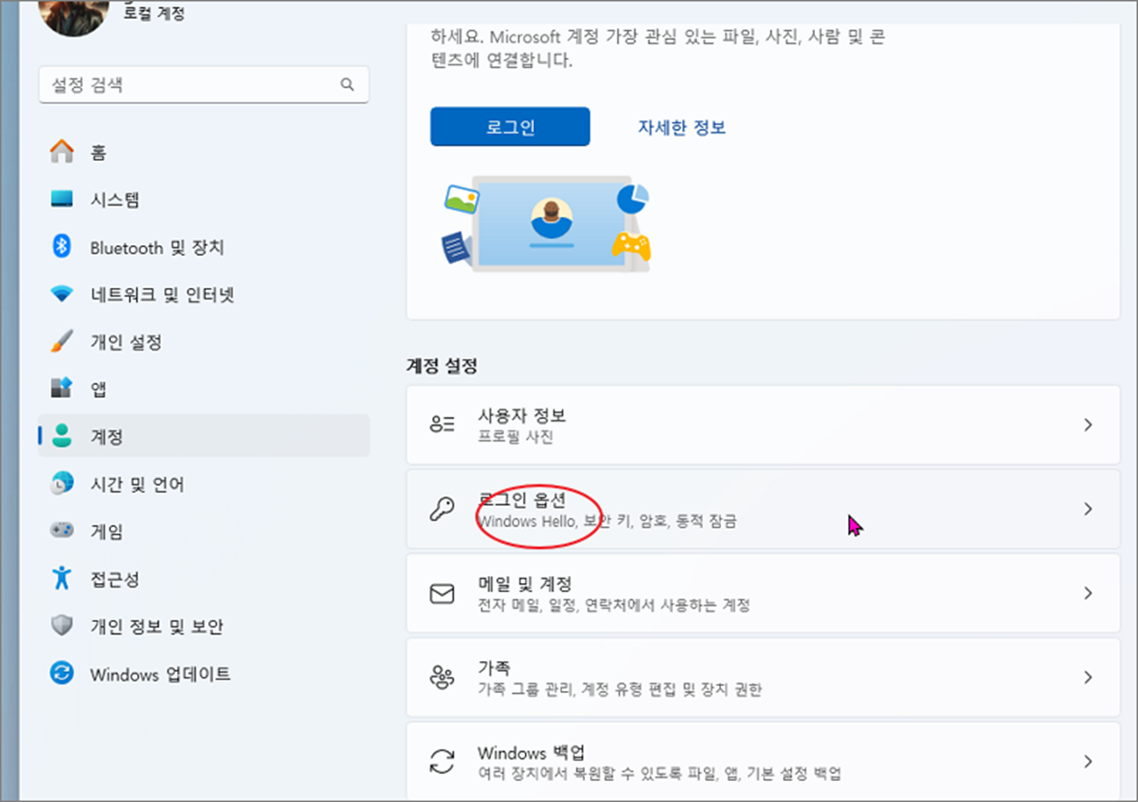 ▼ 계정 설정에서 아래로 내려오시면 "로그인 옵션" 이라고 있습니다.