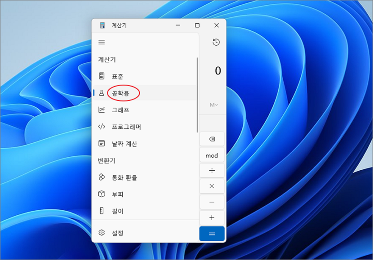 ▼ 왼쪽 상단 더보기를 눌러 공학용 계산기 화면을 띄워보세요.
